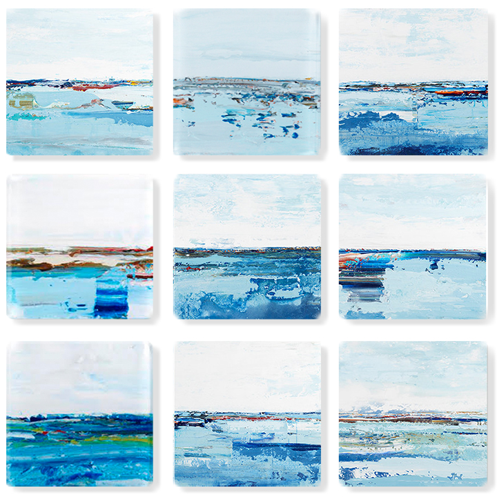 Vetro 0124-04 Abstract Acrylic Transfer Under Glass 16"h × 16"w × 9 pieces Shipped 7/24 Sold,a,c,e,f,g,h
