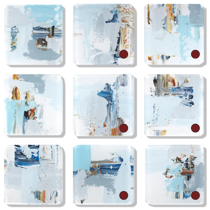 Vetro 0222-03 Archive Mixed medium under glass 16"h × 16"w × 9 pieces JS,sold,e,f,h/b,c,i/a d,g,repurposed to 0224-02 Sold