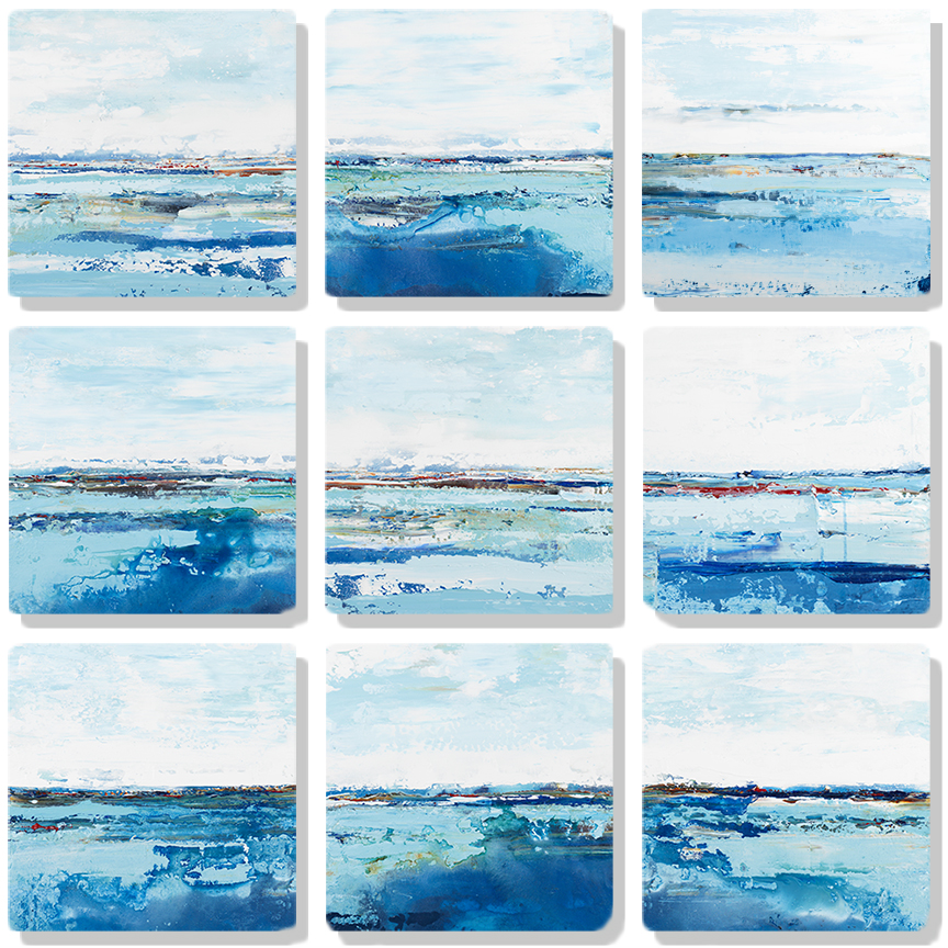 Vetro 0522-04 Abstract Acrylic Transfer Under Glass 16"h × 16"w × 9 pieces Shipped 6/3/22 Sold,e/a,c/d,b