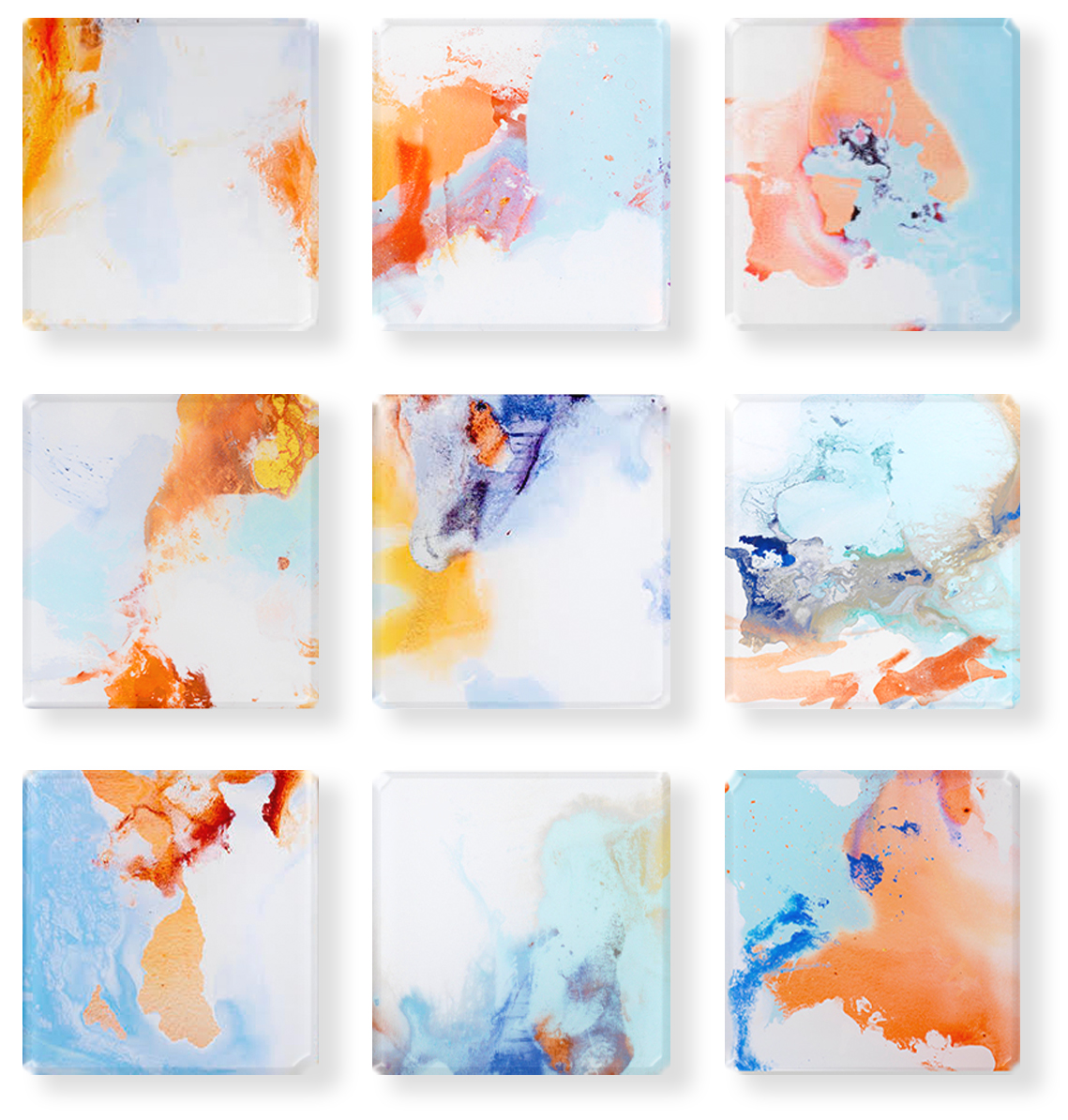 Vetro 0524-02 Abstract Acrylic Transfer Under Glass 16"h × 16"w × 9 pieces Shipped 9/25 Sold,a,b,c,g(n.p.)3/26
