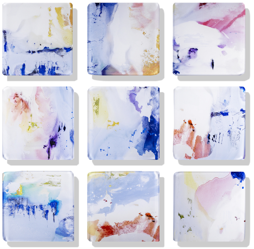 Vetro 0821-04 Abstract Acrylic Transfer Under Glass 16"h × 16"w × 9 pieces M,sold,e/a-i, 4/23